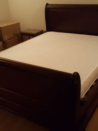 Le lit est en bois massif donc très lourd, bois de haute qualité.