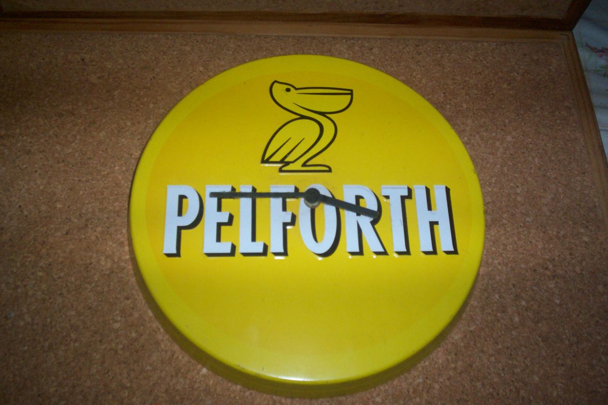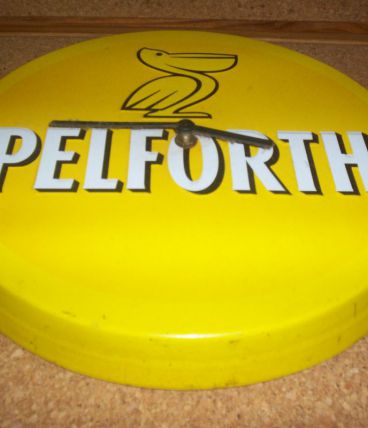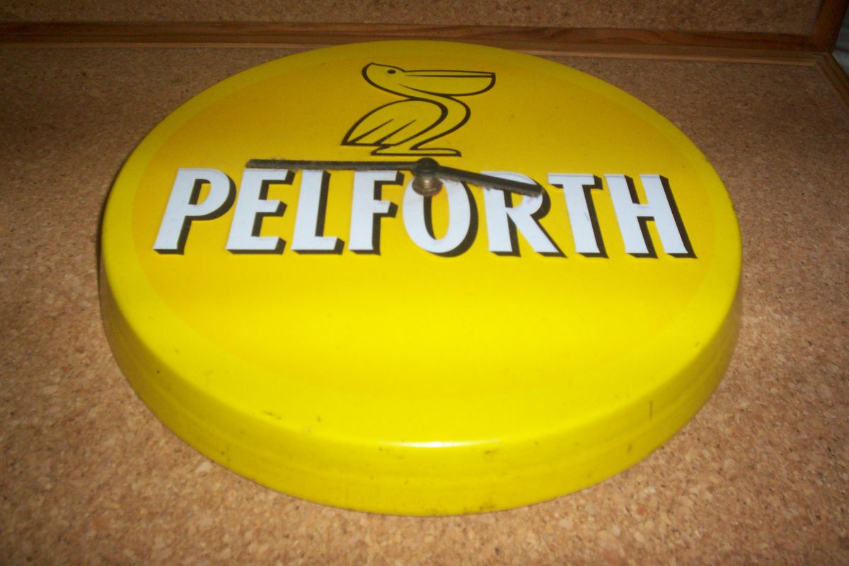 belle horloge murale en métal publicitaire pour les bières PELFORTH de bistrot objet d'occasion bon état fonctionne avec une pile 1,5 volt .