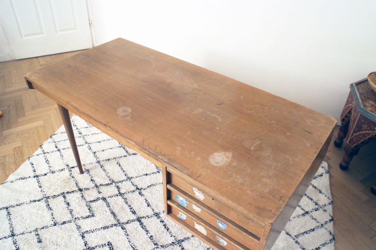 Il est dans son jus , des étiquettes à enlever puis pourquoi pas à poncer puis vernir pour un résultat parfait.