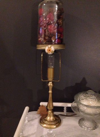 Lampe à huile type "Quinquet", en laiton et cuivre. electrif