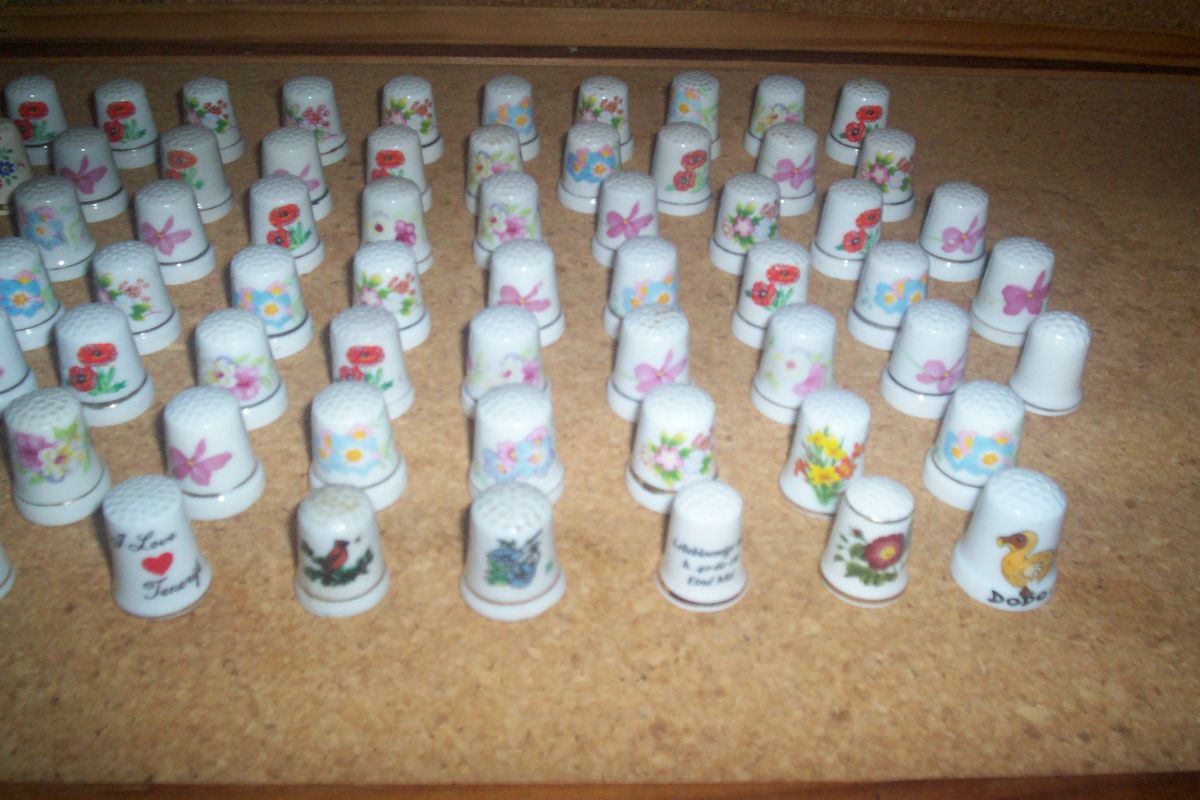 lot de 67 dé (dés ) à coudre en porcelaine decor fleurs et en excellent état avec des doubles lot interressant pour revendeurs à la pièce .