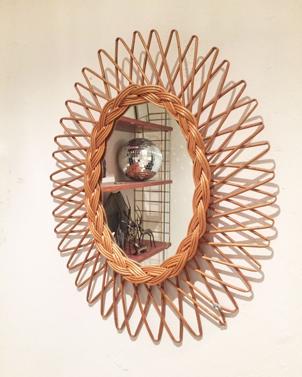 Très joli miroir ovale en rotin, dim 41x32cm .