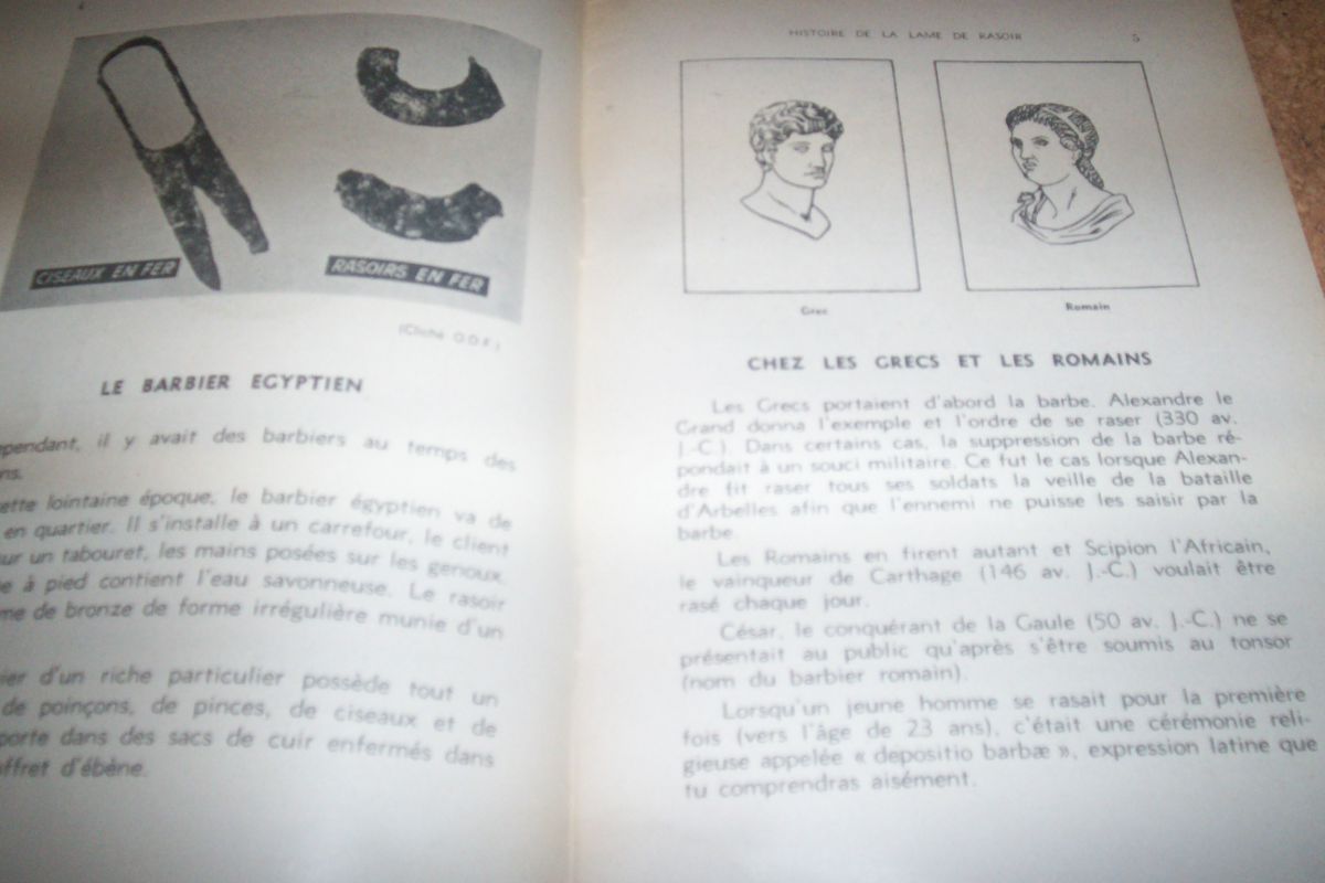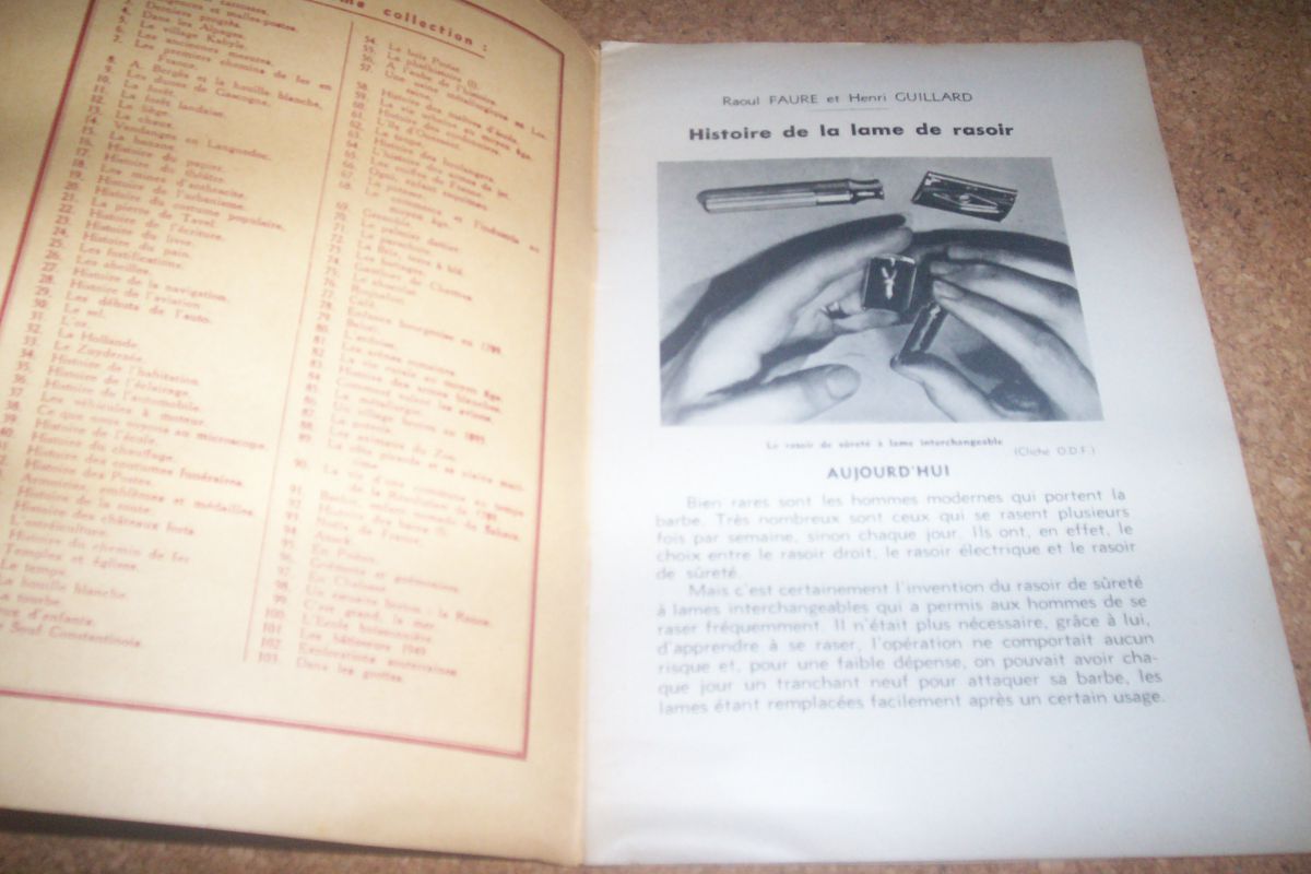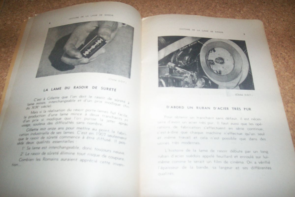 ouvrage des années 1950 sur histoire des lames de rasoir photos noires et blanches revue d'occasion en très bon état propre .