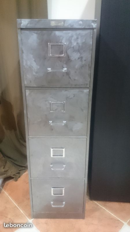 Vends Meuble 4 tiroirs YAC à dossiers suspendus vers 1950, complet avec sa plaque fabriquant et ses porte étiquettes en aluminium.