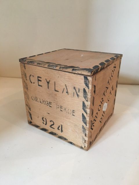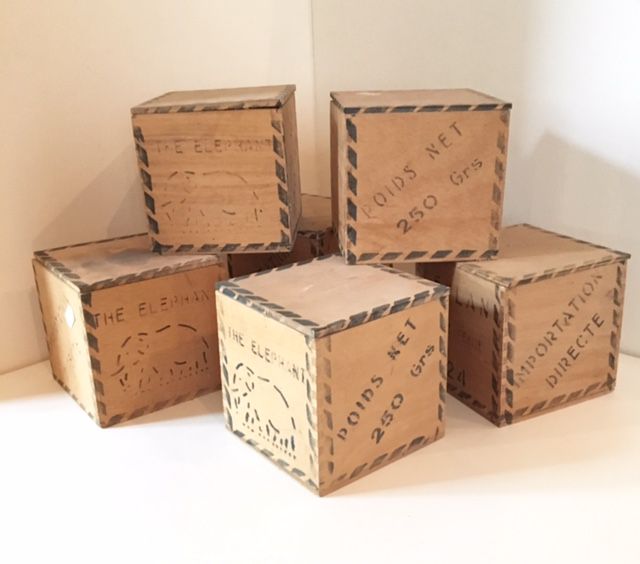 Six boites à thé Éléphant en bois, Ceylan Orange Pekoe.