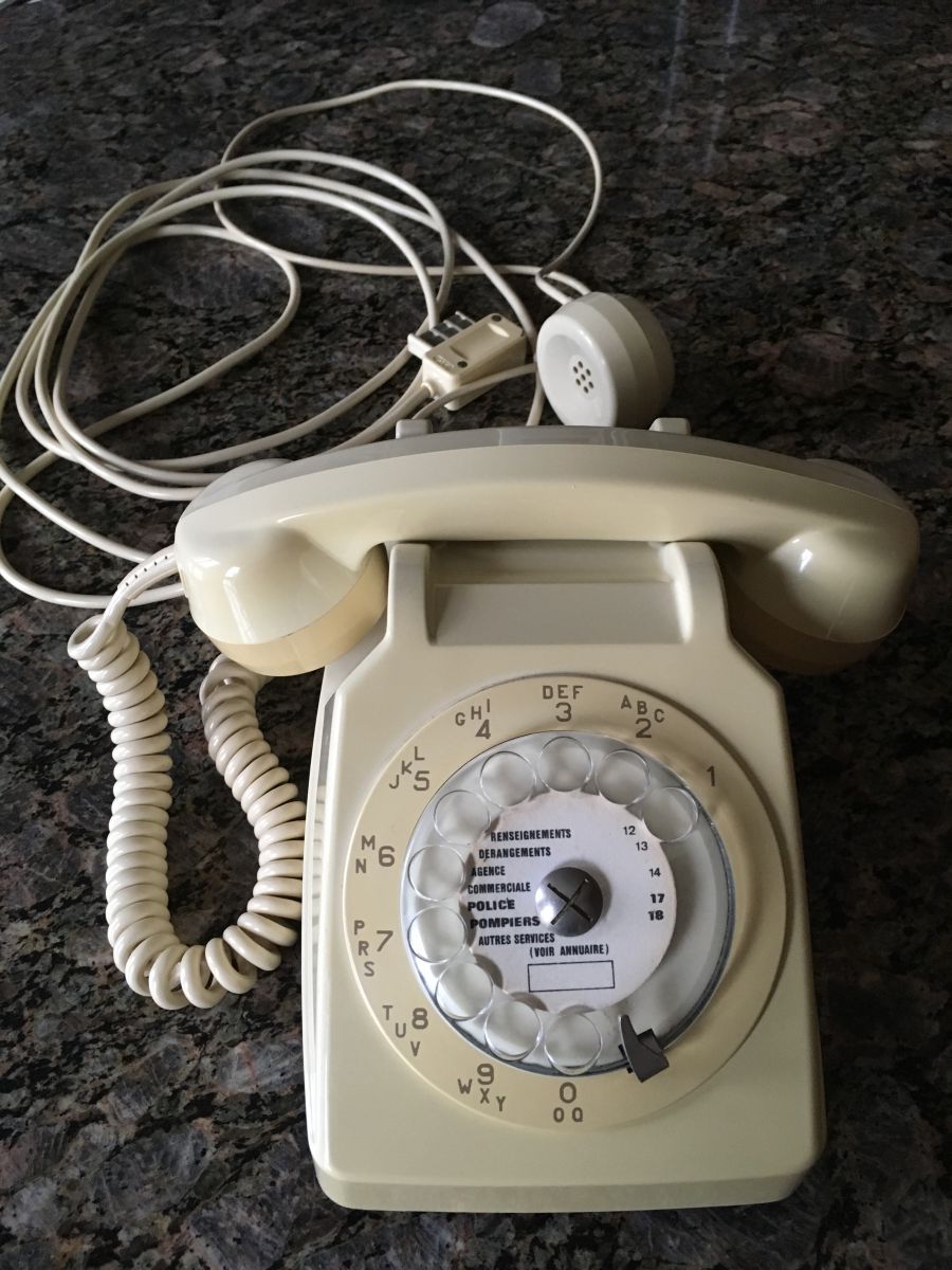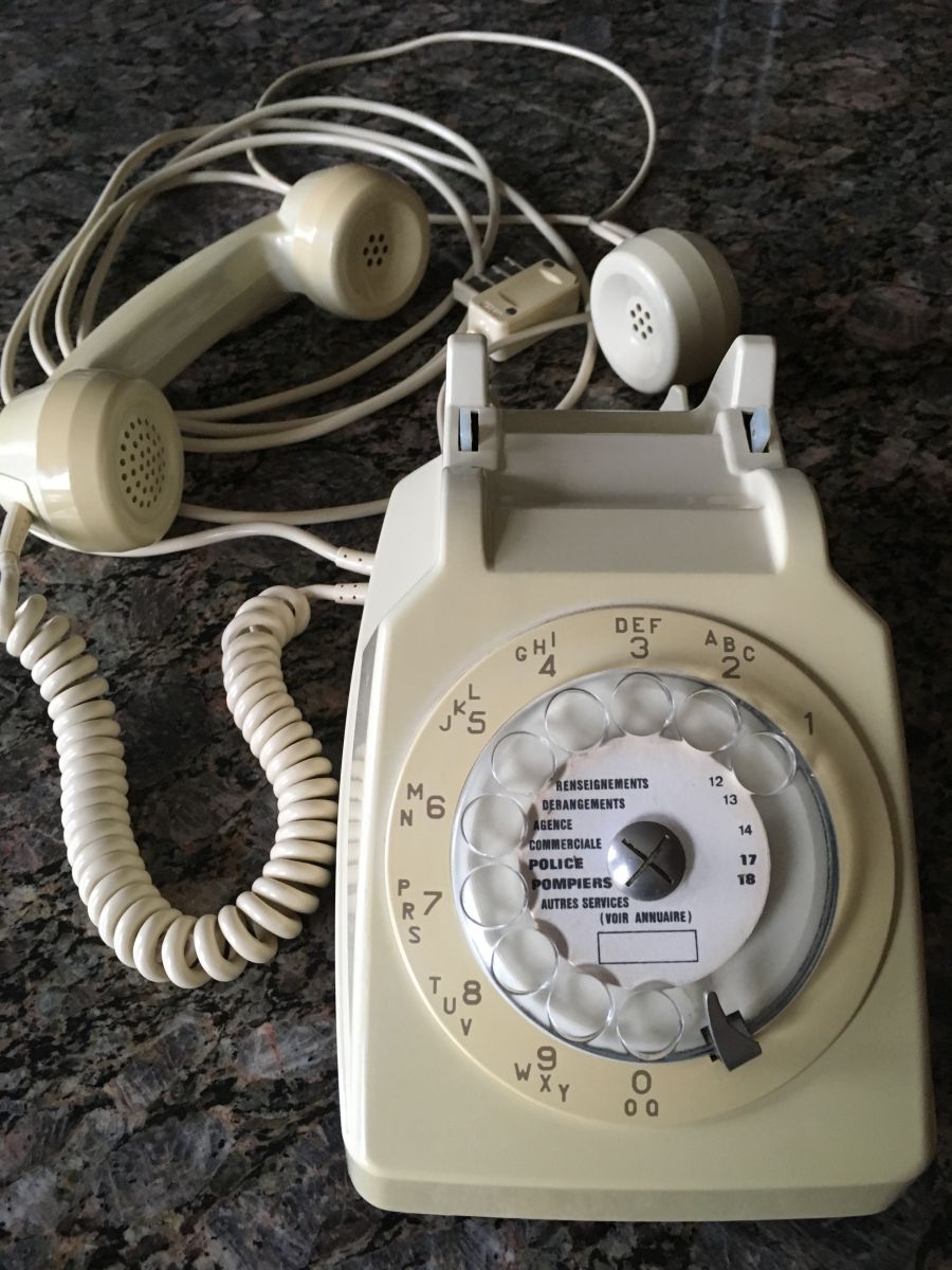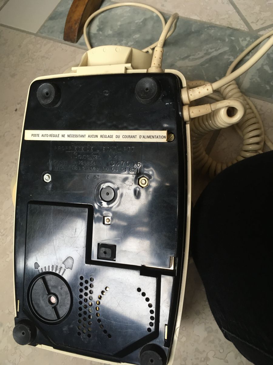 Téléphone vintage socotel S63 du 04/01/82 de couleur crème avec écouteur.