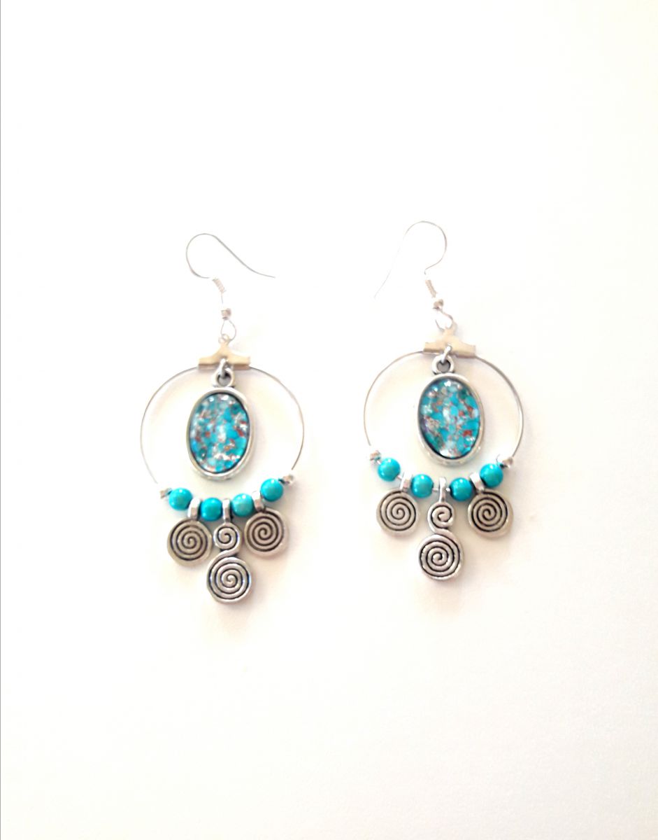 Jolies boucles d"oreilles cabochon ethniques.