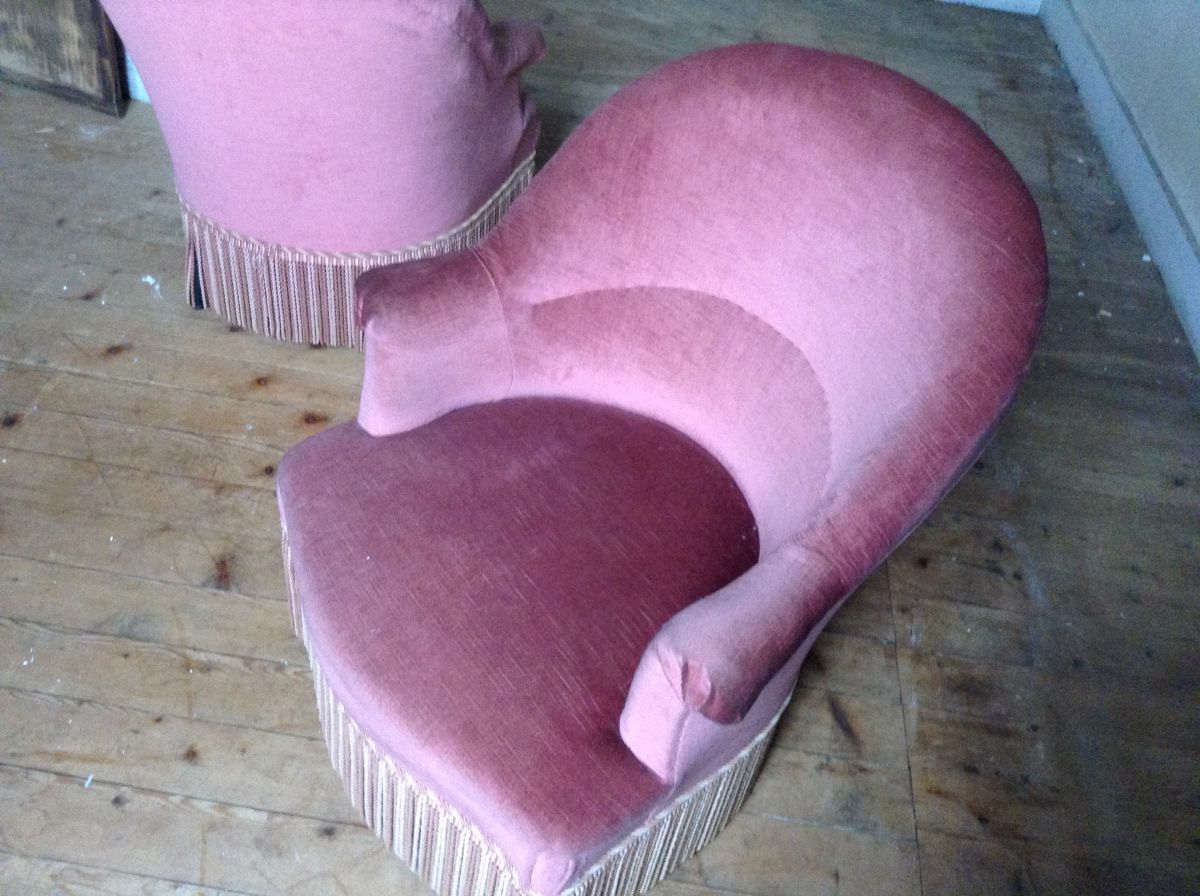 vends 1 paire de petits fauteuils crapauds de chambre ,fin 19 me, en velours rose.