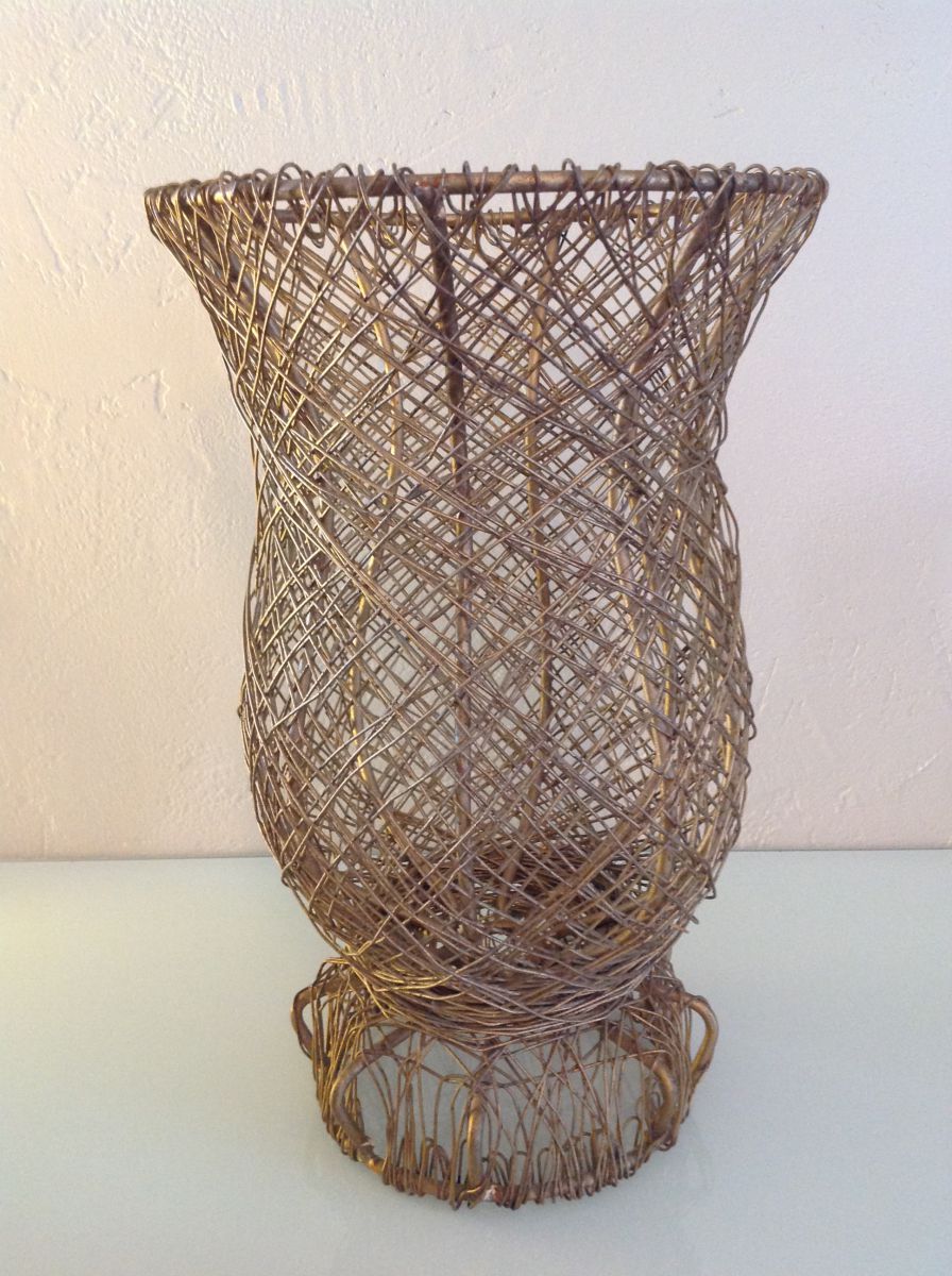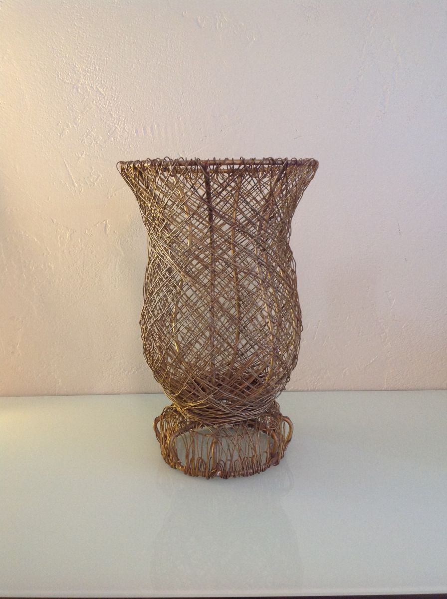 Vase en fil de fer doré mais peut aussi également etre utilisé en abat jour c'est selon votre envie
