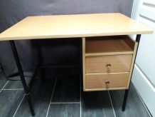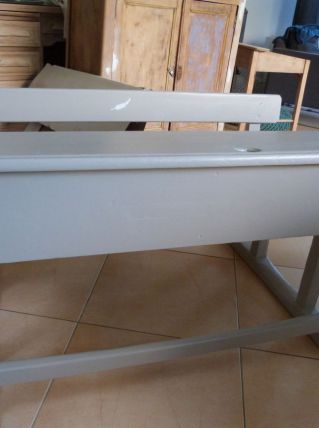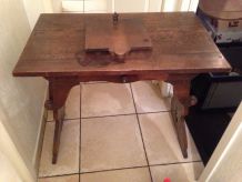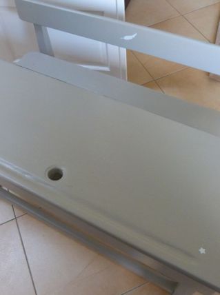 Pupitre ancien restauré et repeint avec peinture à la chaux taupe pailletée, pochoir et intérieur des tiroirs a la peinture chaux blanche pailletée (très discret donc joli).