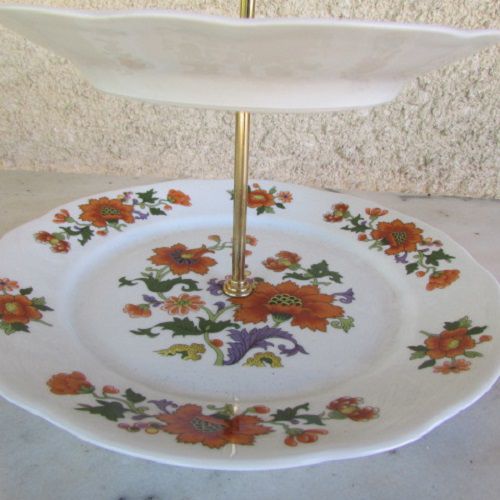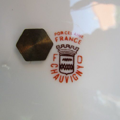 Raffiné ces deux plats à présentation montés sur tige métal doré, démontable, en porcelaine de Chauvigny.
