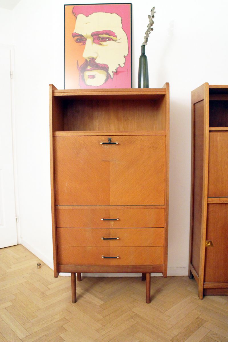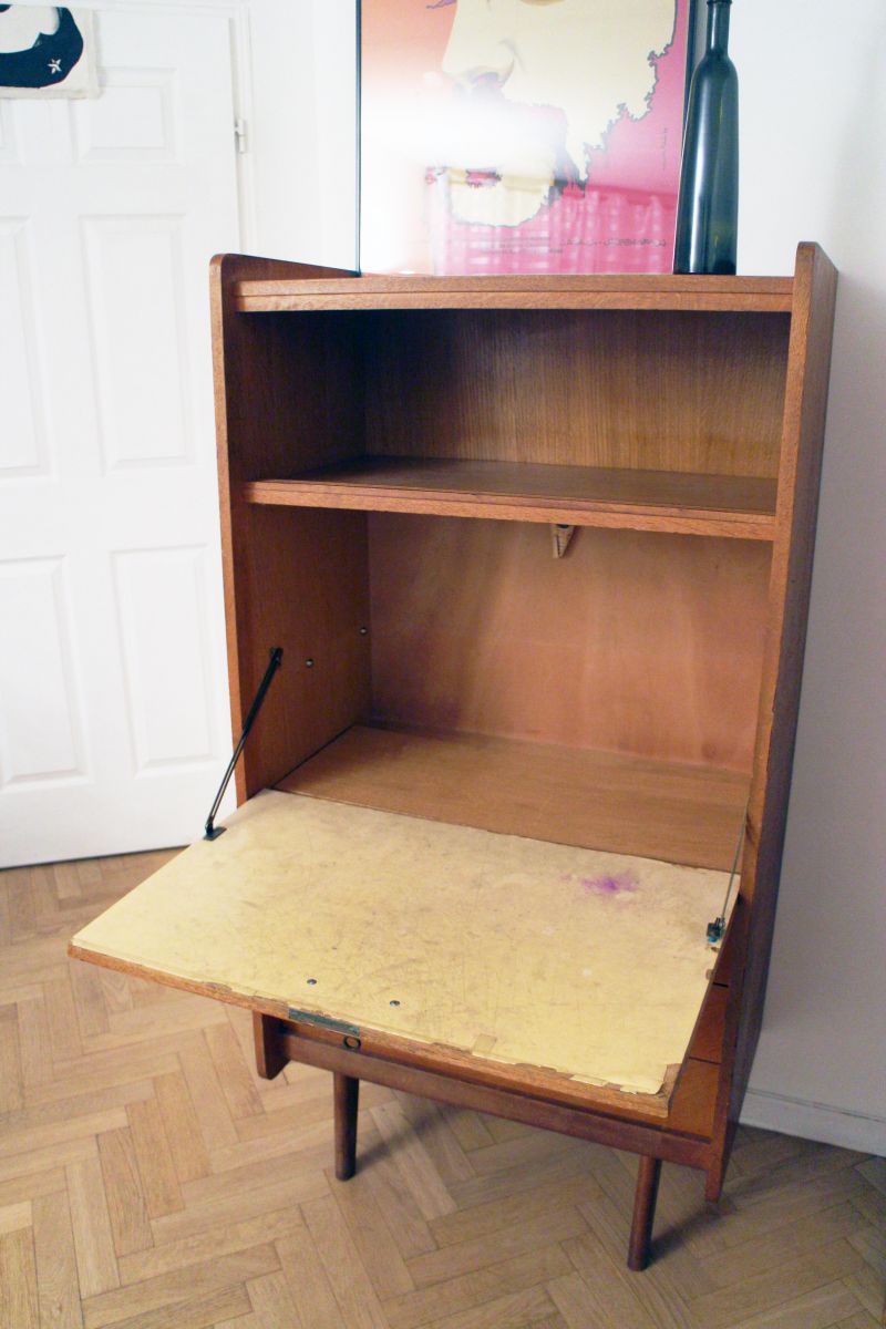 Secrétaire bureau vintage scandinave 3 tiroirs 50's