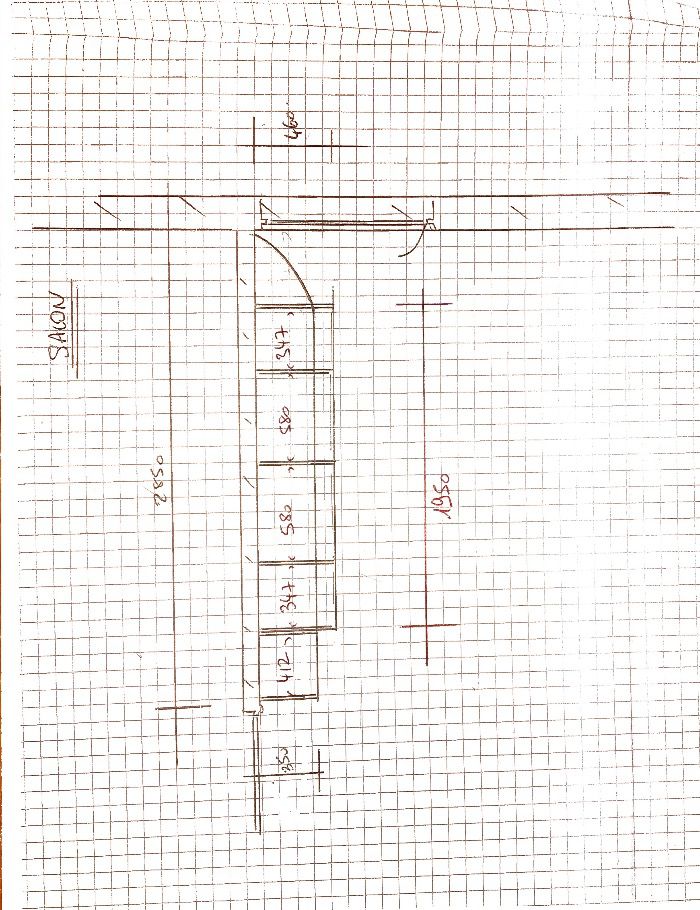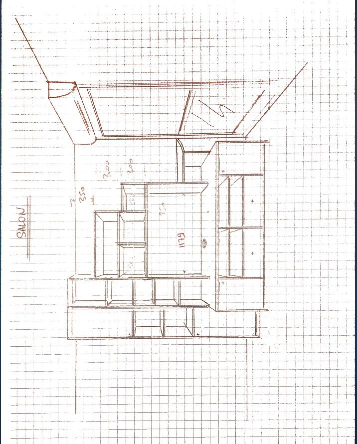 longueur 285 cm - profondeur 46 cm (au plus profond) - hauteur 250 cm au plus haut