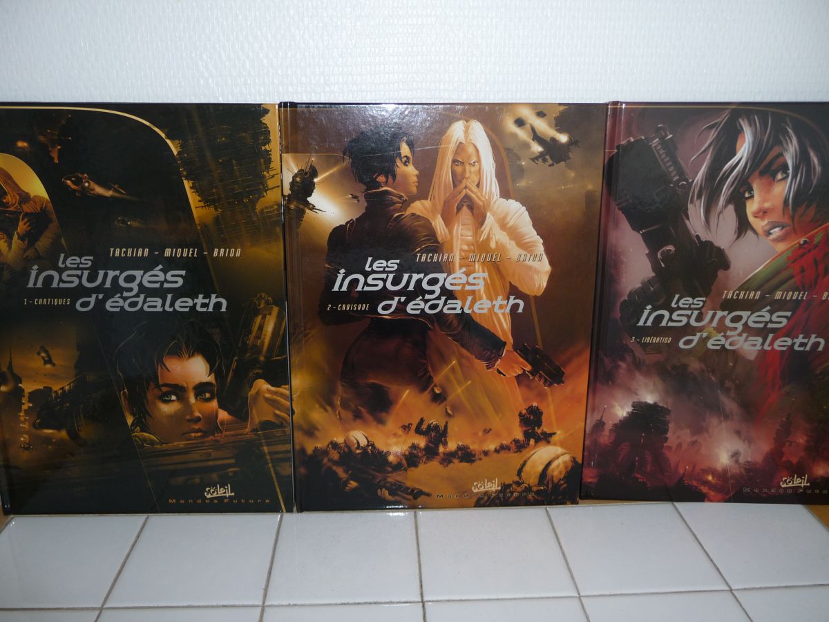 BD ‘’Les insurgés d’Edaleth’’ SF (Série terminée) : BD neuves. Tome 1 ‘’Cantique’’, Tome 2 ‘’Croisade’’ et Tome 3 ‘’Libération’’. L’Histoire : Au coeur de la galaxie d'Irth, une nouvelle croisade vise à écraser définitivement toute rébellion. Seuls les Insurgés d'Edaleth s'élèvent encore contre la tyrannie. Pour survivre, un seul moyen : choisir son camp. Pour durer, un seul mot d'ordre : le trahir.