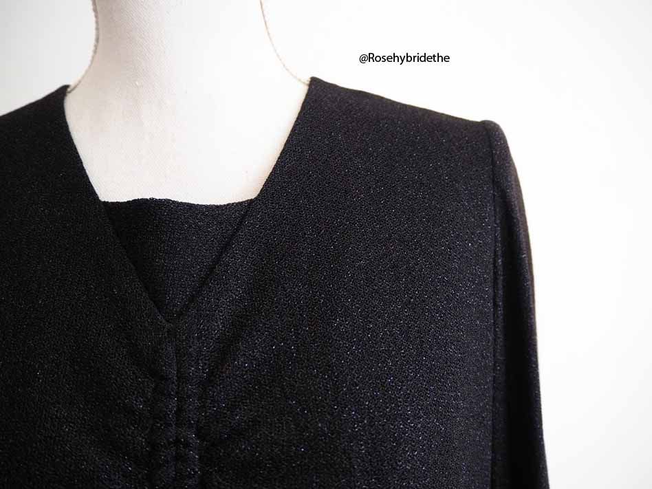 Le haut de la robe est pailleté et la jupe toute noire.