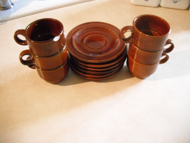 De couleur marron, cet ensemble de 6 tasses et 6 sous tasses.