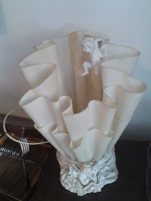 lampe ange socle en résine corolle en tissu rigide hauteur 30 cm diamètre socle 16 cm montage électrique a vis petite douille l 'ange sur la corolle est mobile