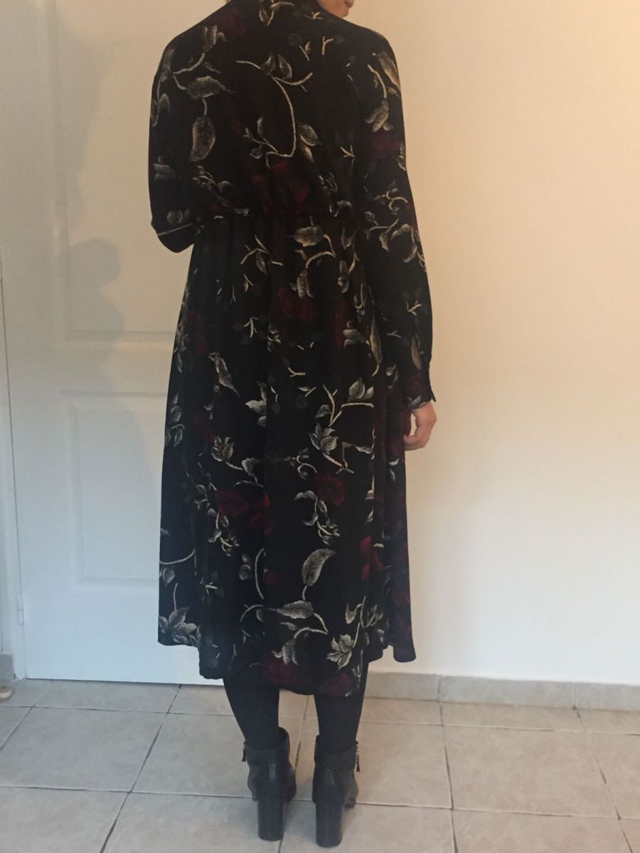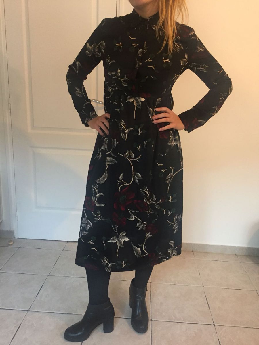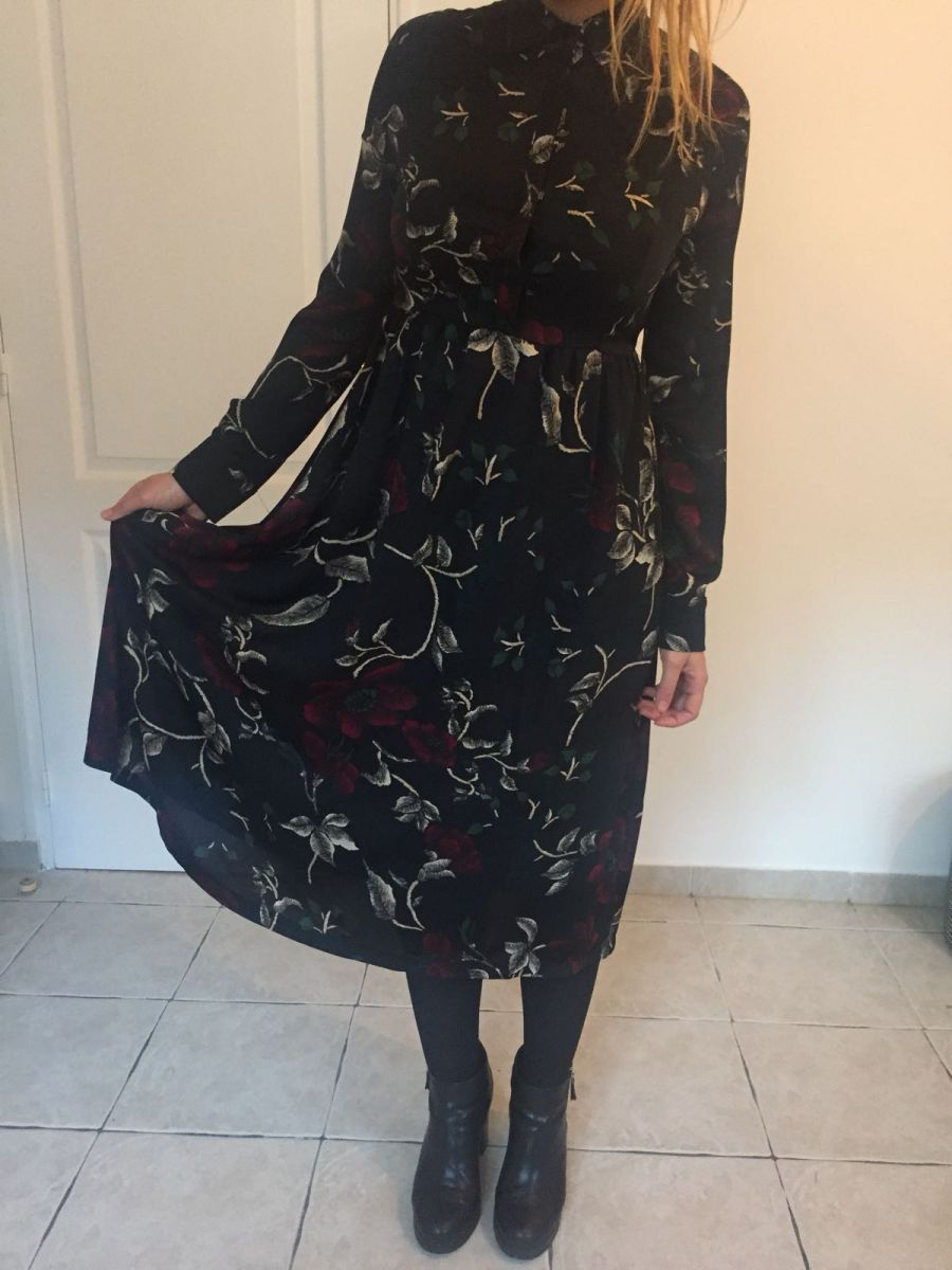 Robe noire avec motifs fleurs