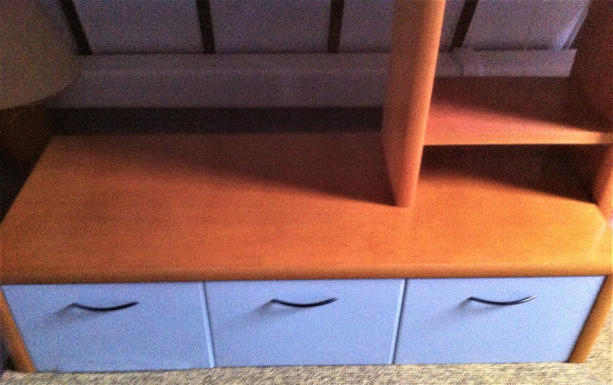 Avec 3 tiroirs bas, façade teintée vert très pâle