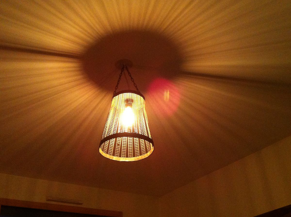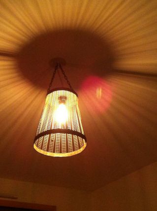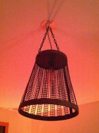 Corbeille à papier en fer année 50 (signée) transformée en luminaire par un artisan (aux Puces de Lyon)
