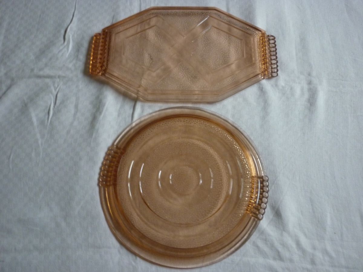 Lot de 2 plateaux en verre moulé rose