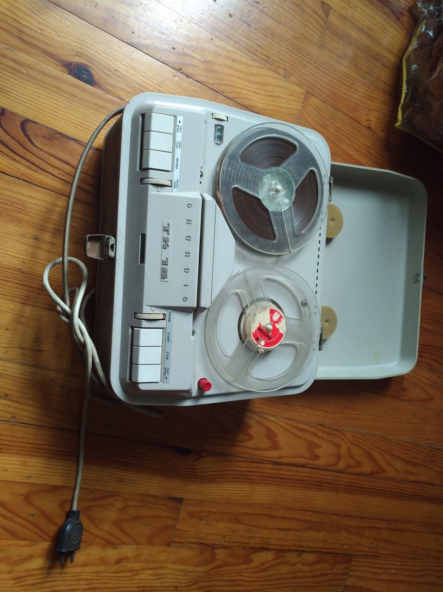 J'ai découvert ce magnétophone à bande magnétiques GRUNDIG TK18 dans les affaires de mon père. Datant des années 70, ce magnétophone se présente sous forme de valise blanc cassé