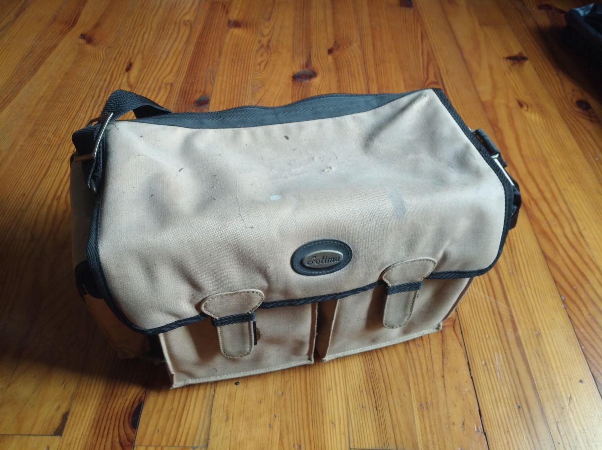 Sacoche de rangement pour appareil photo/vidéo. La couleur du tissu est un peu passé mais tout le reste est comme neuf.