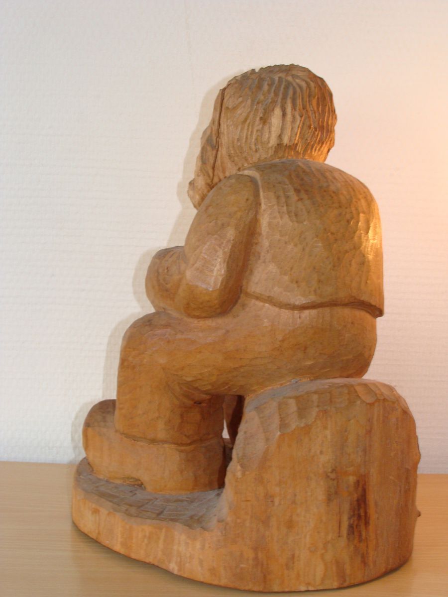 légère fente dans cheveux à la droite du sujet due au séchage du bois.