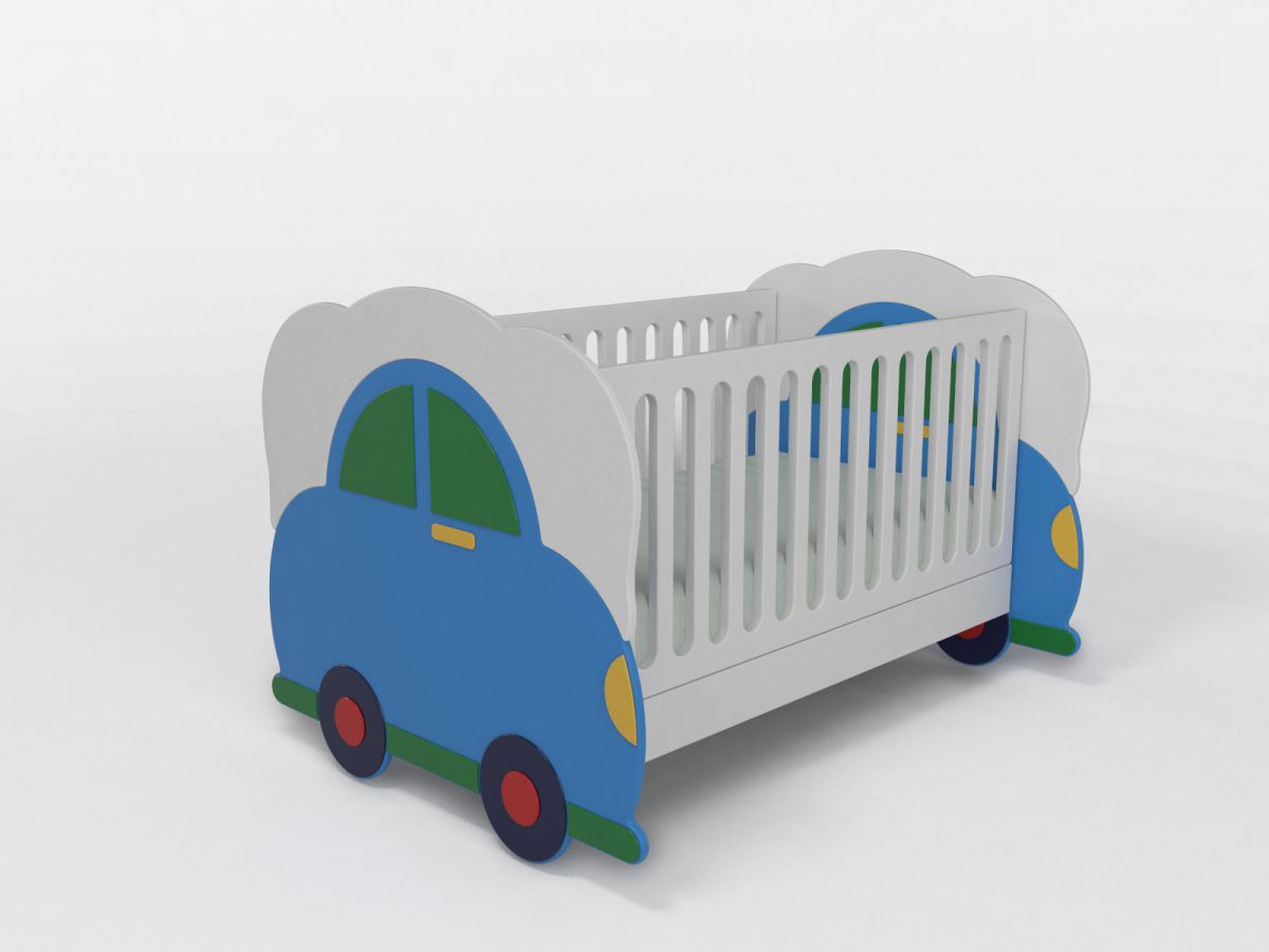 Berceau se transformant en lit en retirant les barreaux et le nuage (voir photo). Sommier, matelas et barrière de sécurité double inclus.