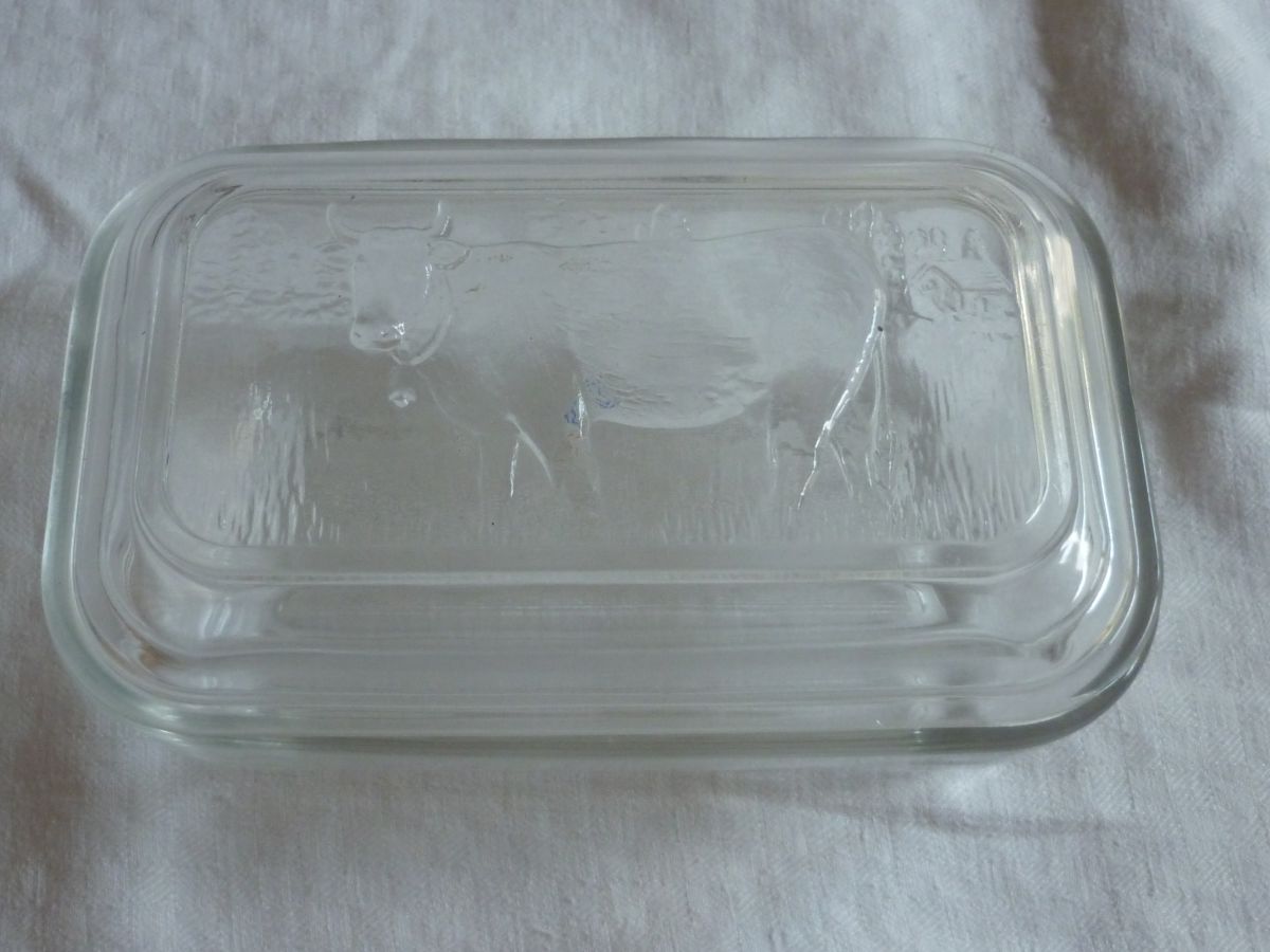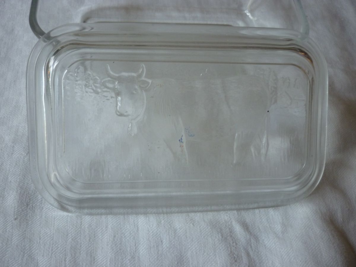 Beurrier verre decor vache sur couvercle