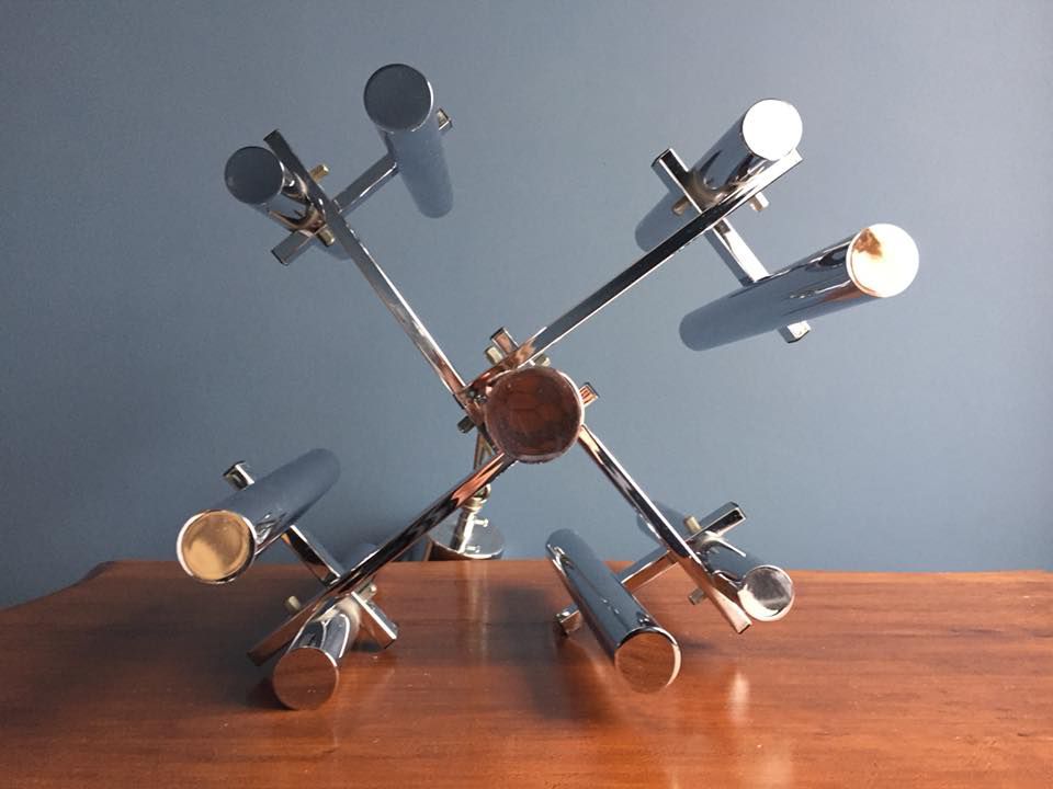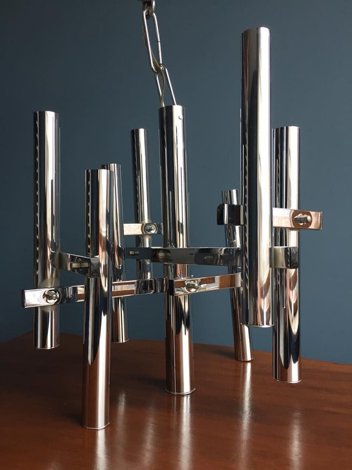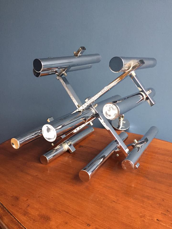 Suspension en métal chromé du designer Angelo Sciolari, composée de 8 points lumineux