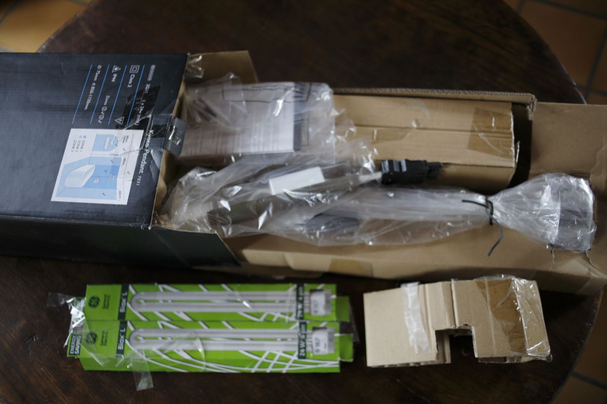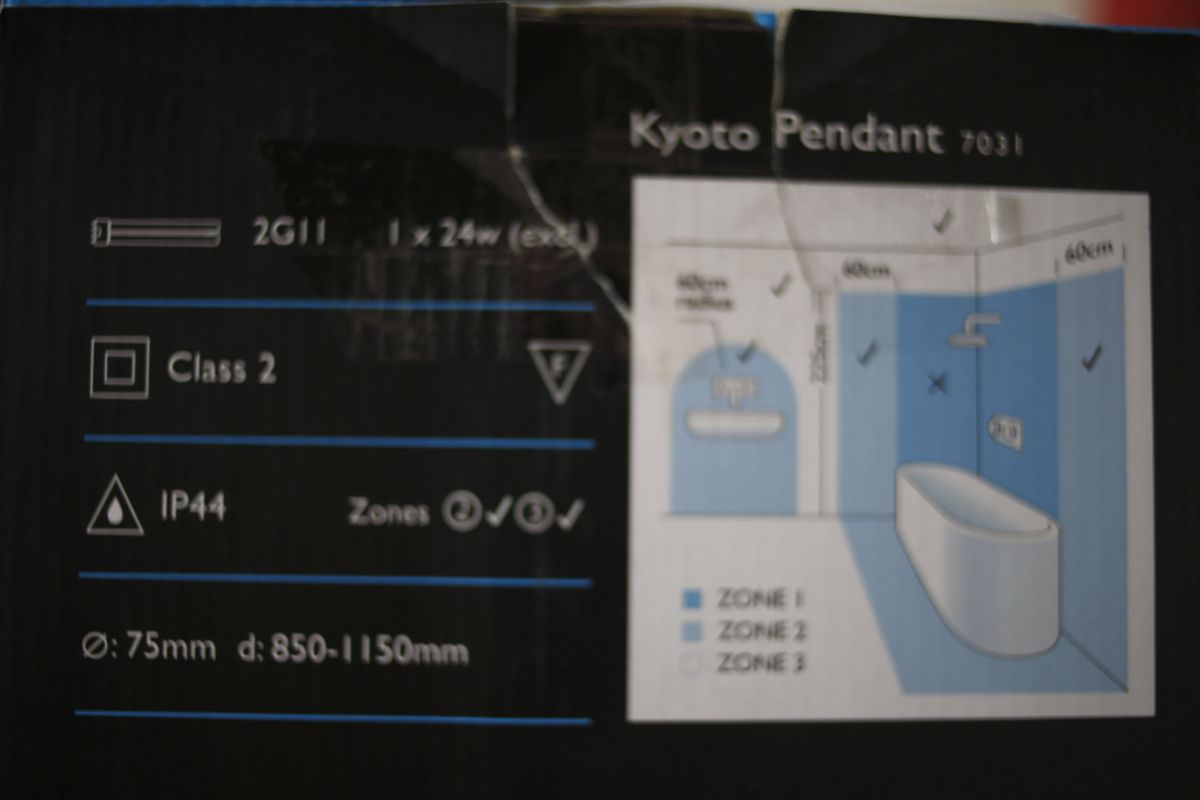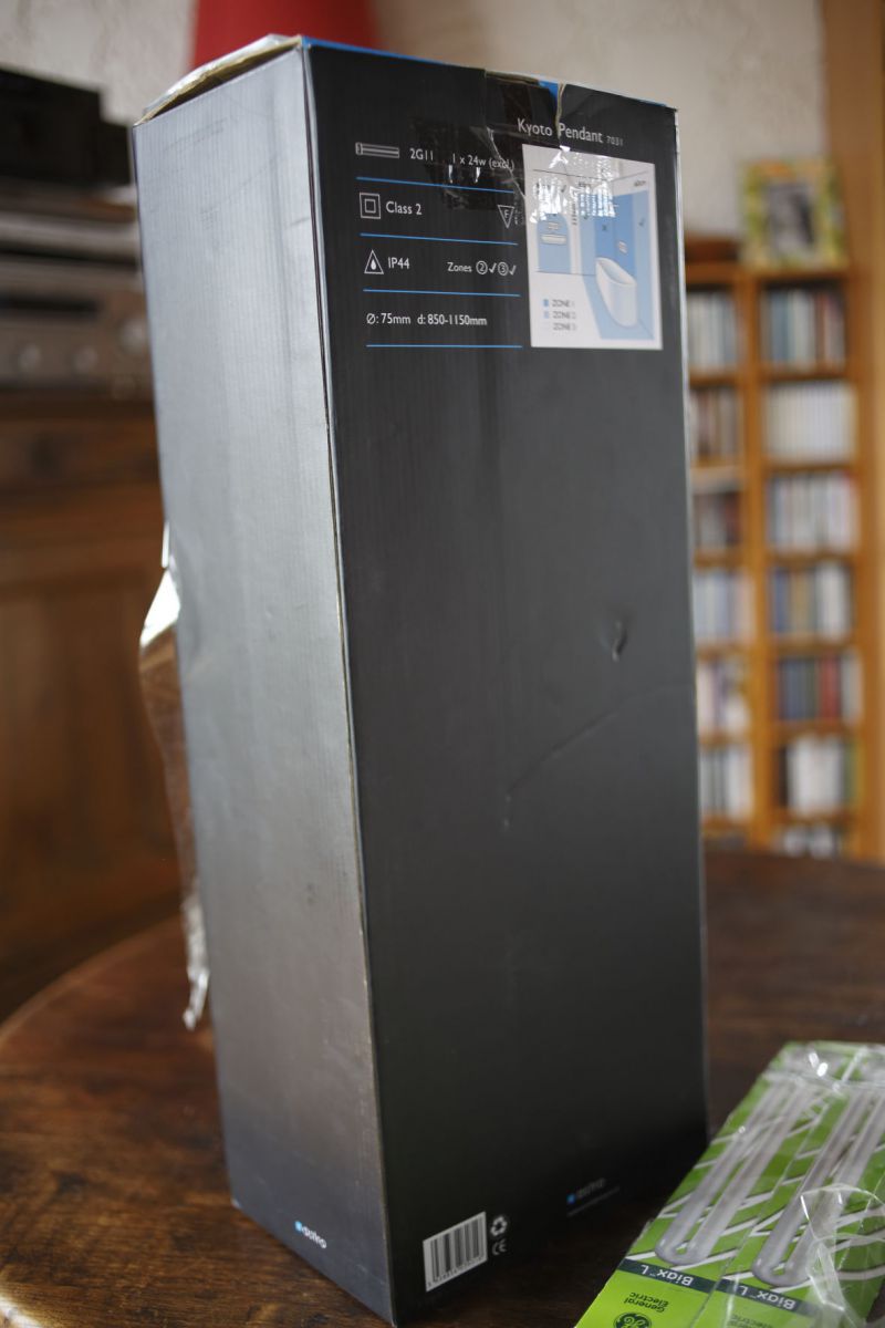 Suspension sdb bas voltage pour faux plafond, de chez ASTRO, type KYOTO pendant ref. DV7031, jamais utilisée dans son emballage d'origine avec les ampoules Biax L 24W/830 2G11 4 broches.