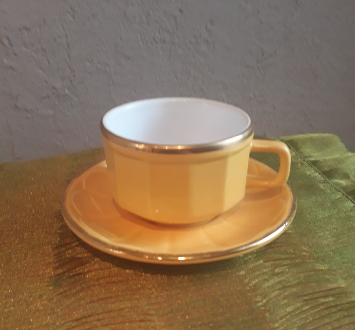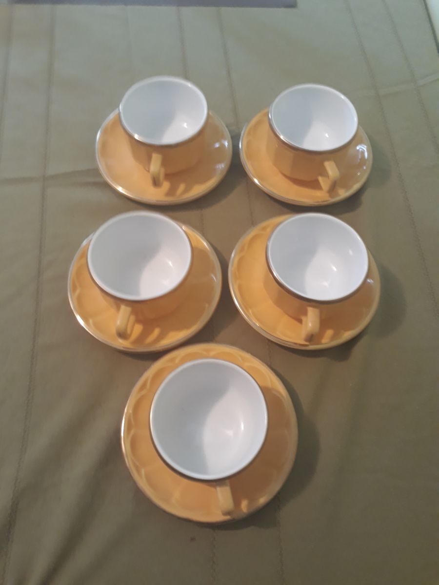 5 tasses à café bistrot, jaunes, liseré doré, vintage