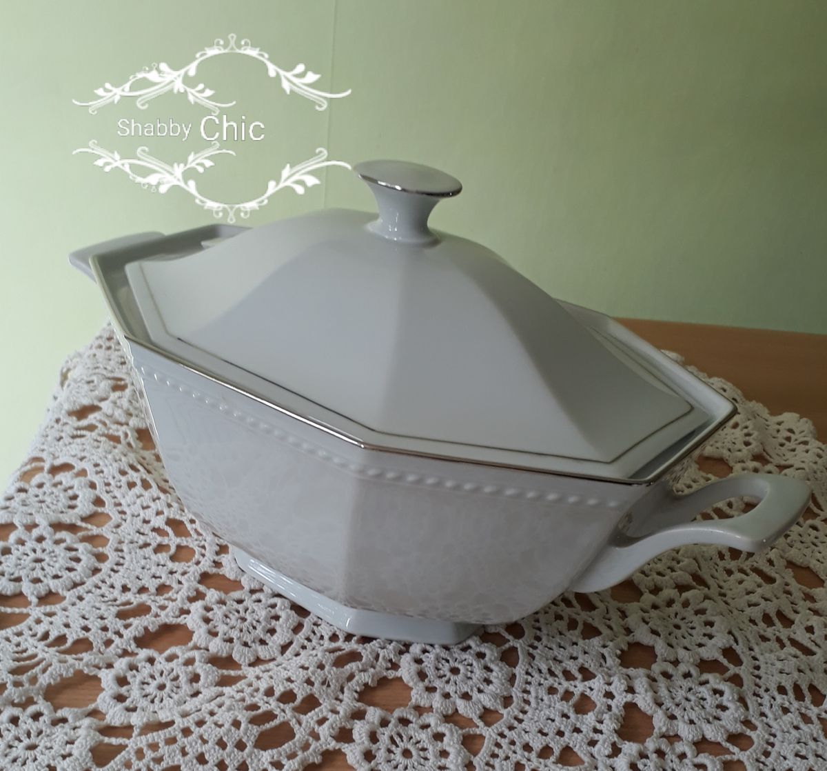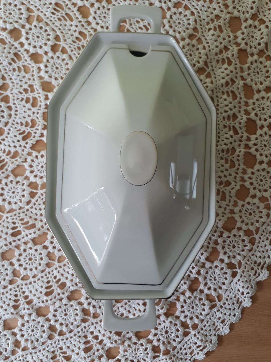 Chic et élégante soupière, porcelaine brillante, modèle octogonale très design, n'ayant jamais servi.