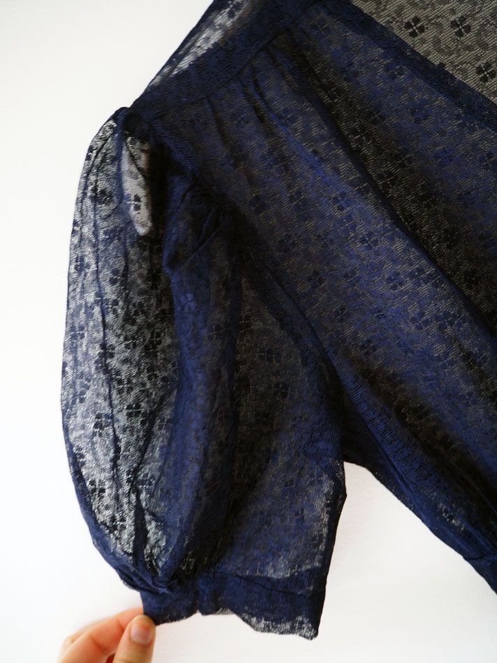 Jolie robe en dentelle bleue marine datant des années 1940.