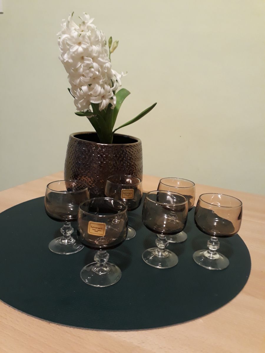 6 verres liqueur brun gris fumé, luminarc - VINTAGE