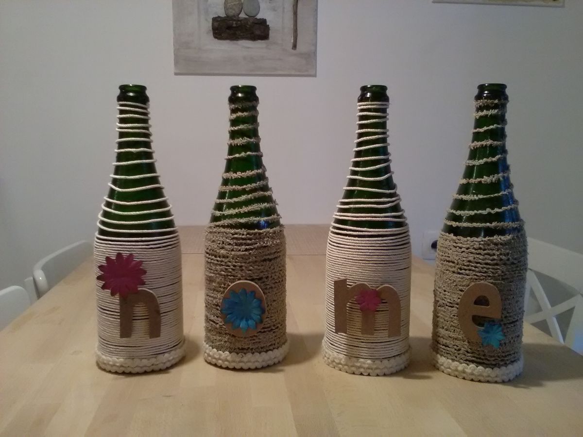 Bouteilles de champagne customisées avec des lettres en bois , fleurs en papier