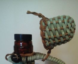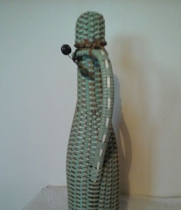 Bouteille à liqueur fil Scoubidou vert menthe.