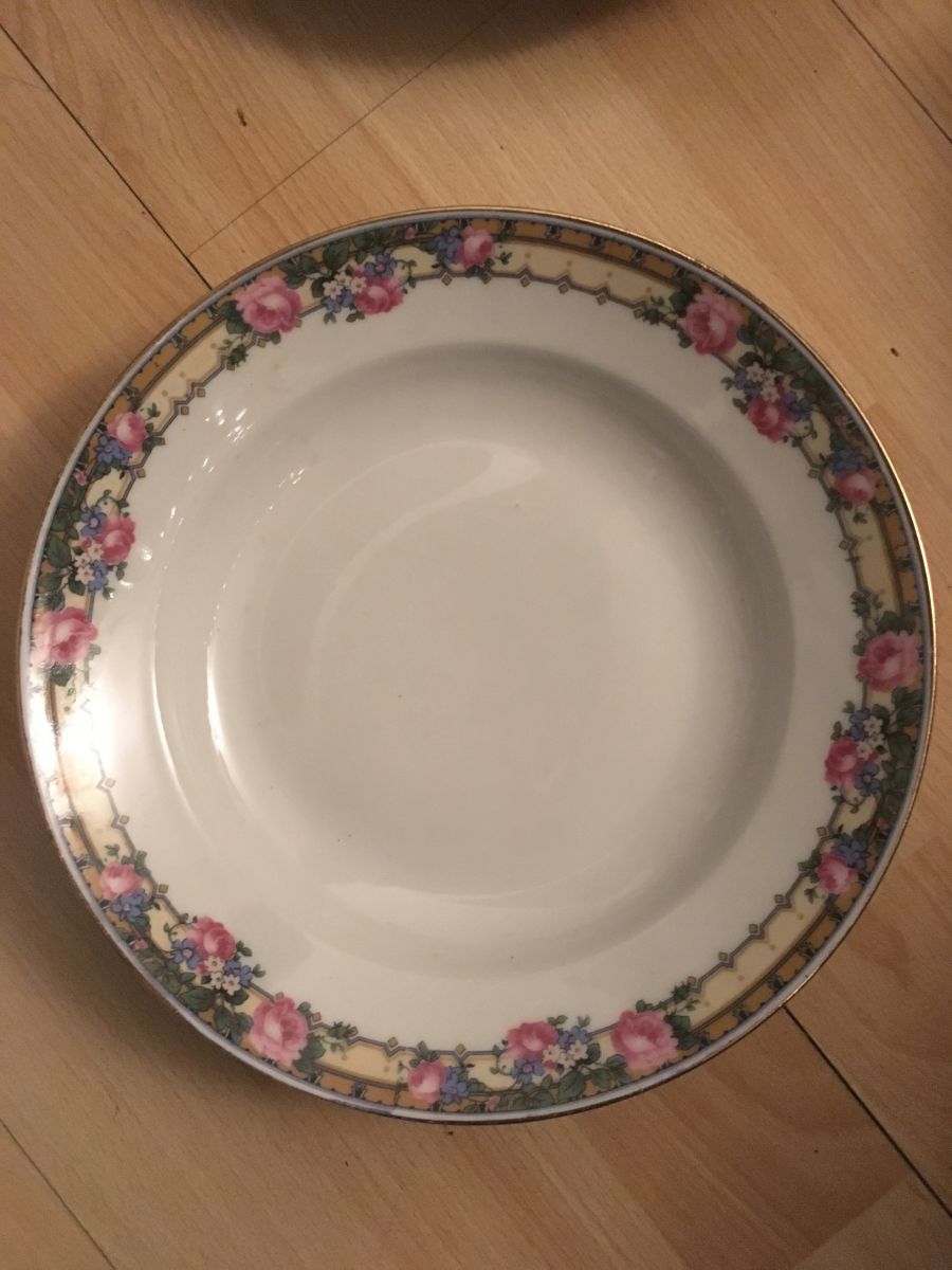 11 assiettes creuses avec bords fleuris. 23cm de diamètre, pas de fissures, ni tâches...
