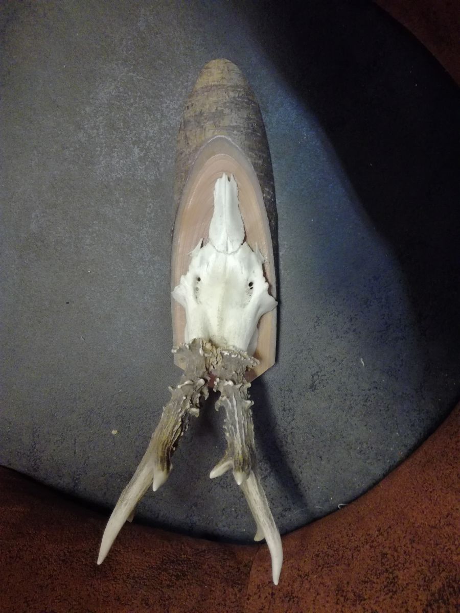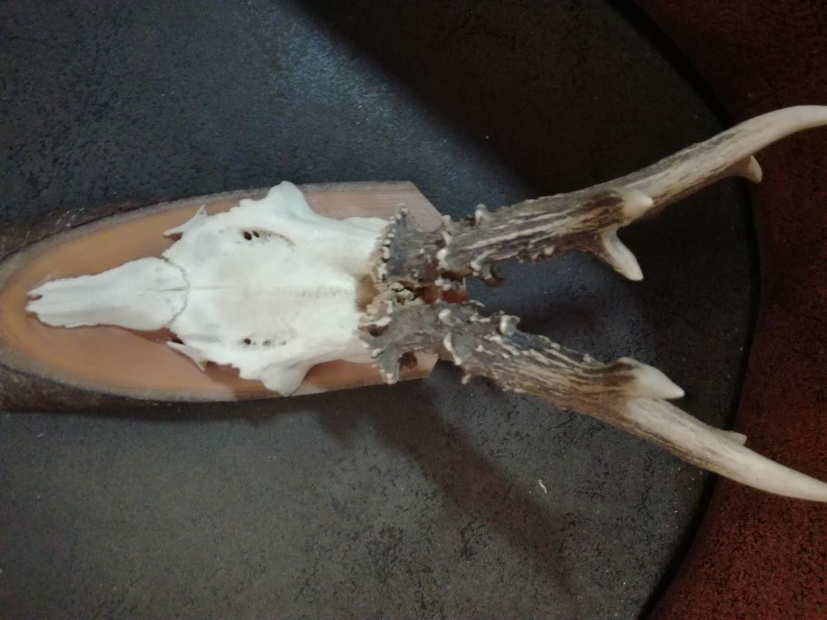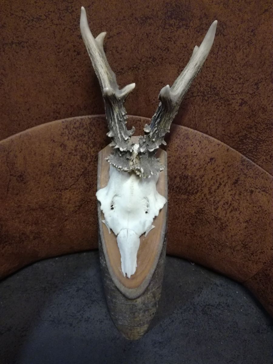 Trophée chevreuil vintage monté sur une joli plaque du bois de chêne.Très tendance