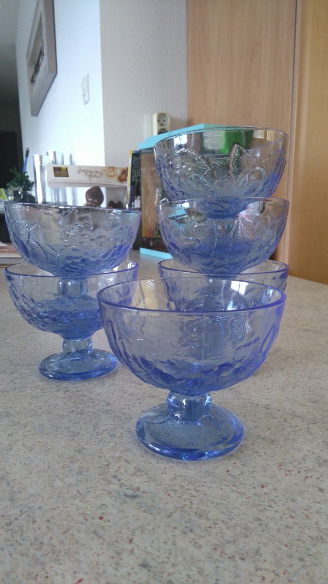 6 coupes à fruits de couleurs bleues, très peu utilisées.