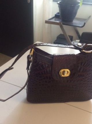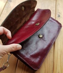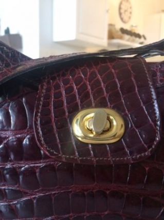 sac en crocodolie bordeaux avec anse et fermeture et anneaux dorés