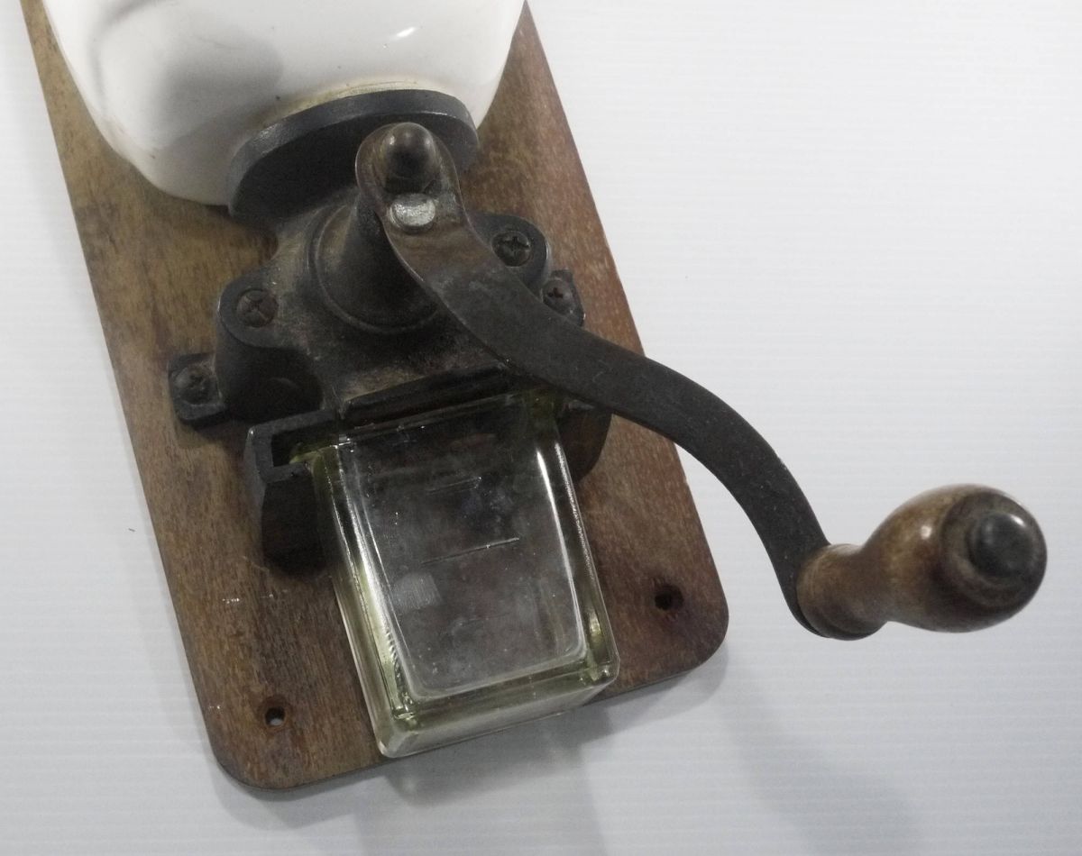 Support mural en bois, corps du moulin en céramique, moulin en fonte et réservoir en verre épais