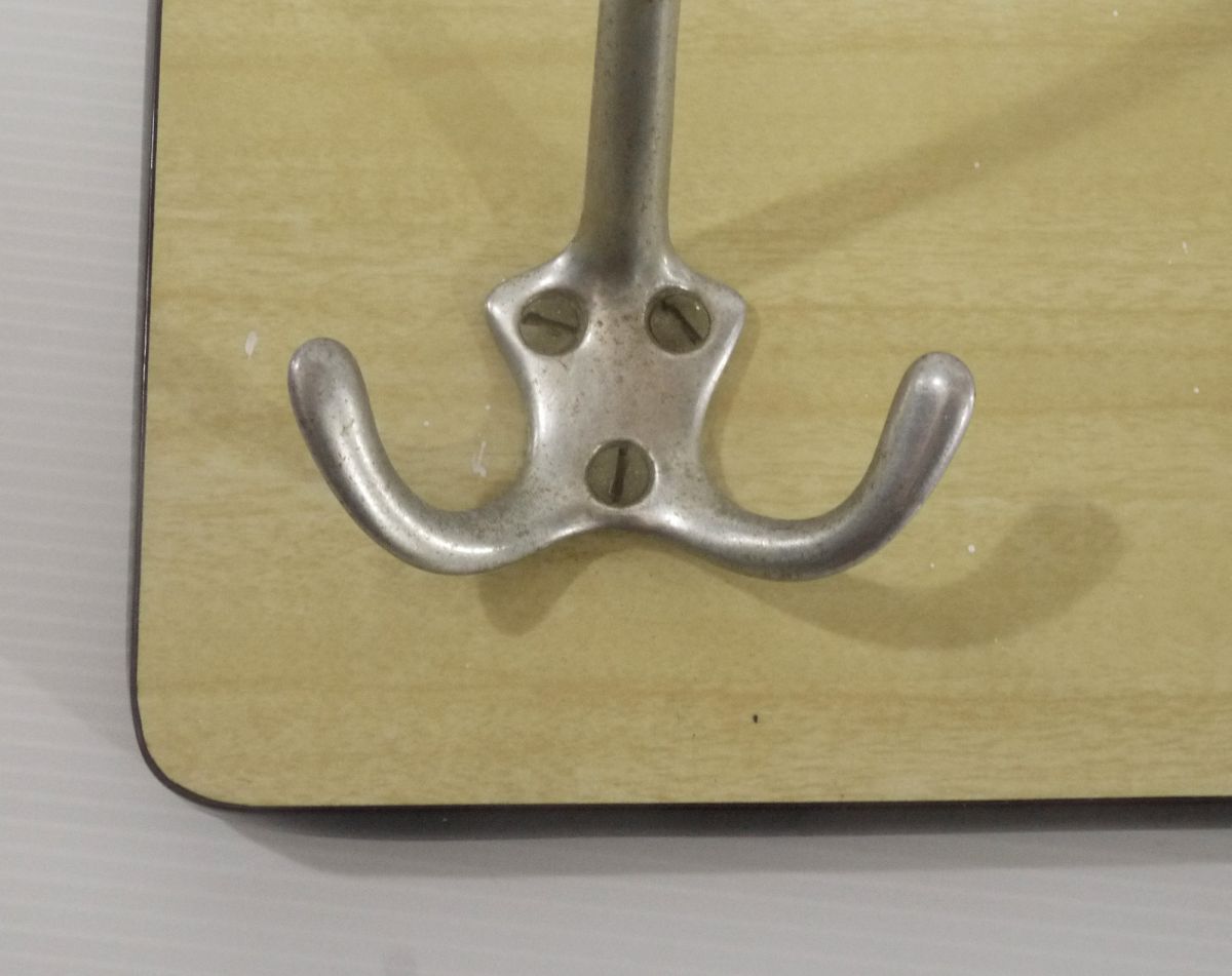 Vintage porte-manteau mural en formica jaune paille avec 5 patères en aluminium des années 1950s