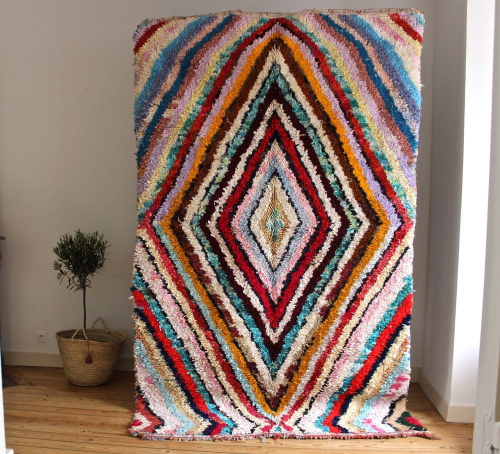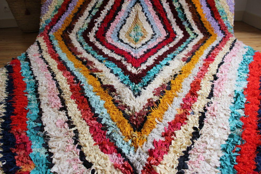 Design hypnotisant avec un travail remarquable réalisé pour cette pièce unique par les tisserandes .