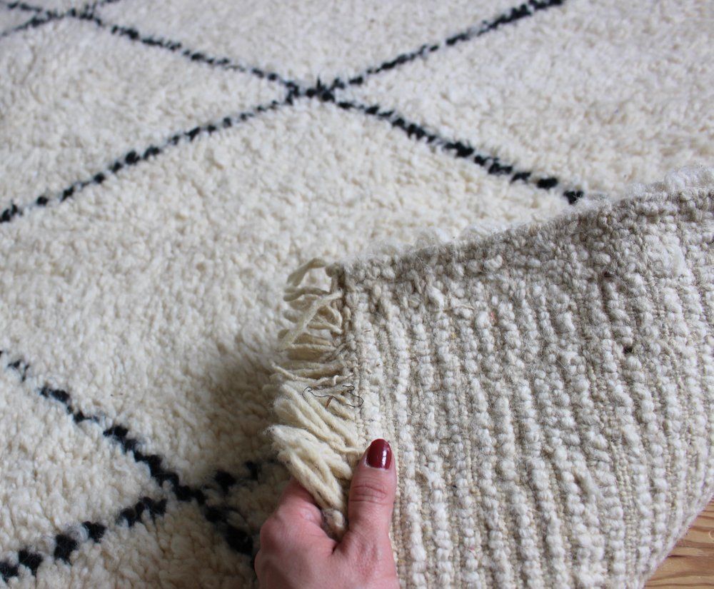 Tapis beni ouarain tissé main au Maroc par les familles de tisserandes avec lesquelles nous travaillons