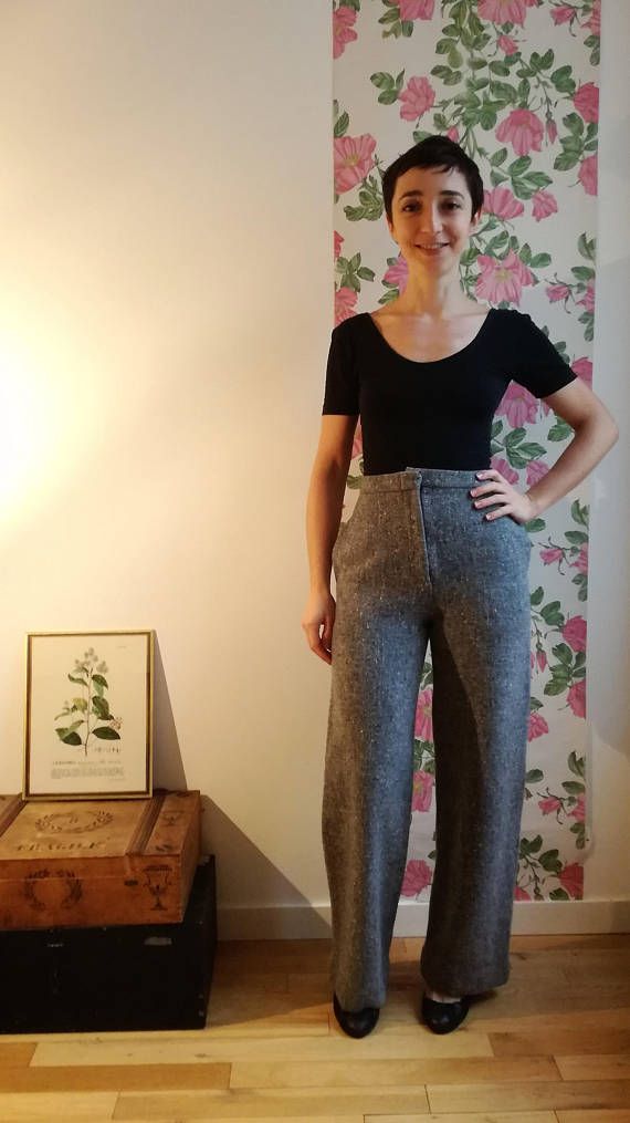 Angèle - Pantalon Max Mara vintage en laine gris chiné