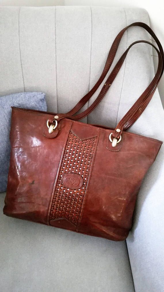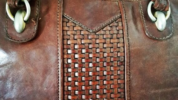 Honorine - Sac cabas vintage en cuir à grandes anses tressés