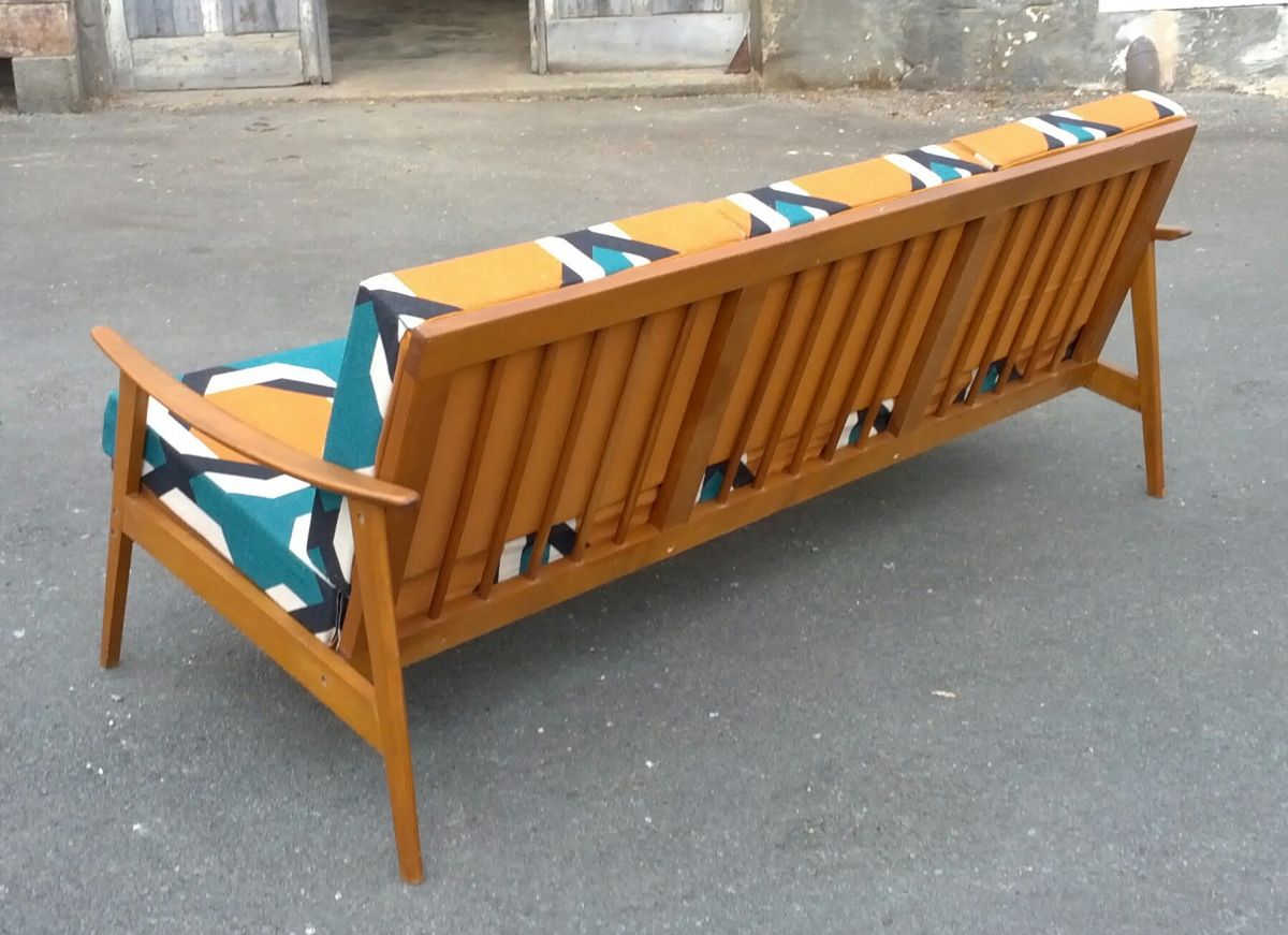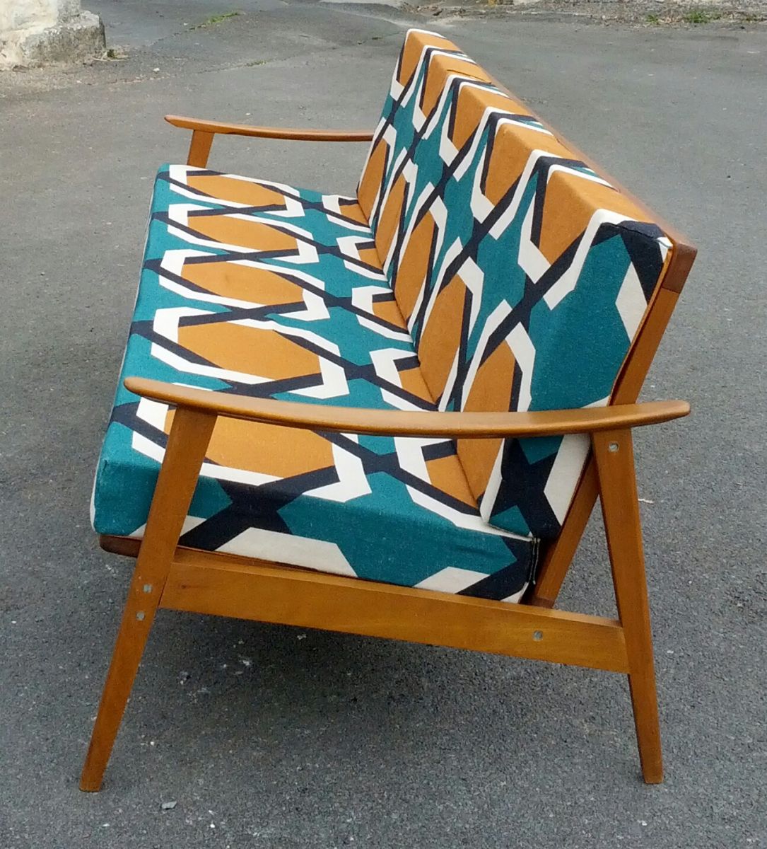 Superbe banquette scandinave 3 places, pieds en déporté à l'arrière et accoudoirs bananes. Parfait état. Entièrement refaite avec une Mousse Bultex et un magnifique tissu de lin "Parioni" de chez Gaston y Daniela (j'invite les curieux à faire leurs recherches et n'oubliez pas qu'un tissu naturel a par conséquent un aspect naturel et que son aspect brut e fait son charme.) Pièce unique et absolument originale! Très graphique! Parfait pour une assise maintenue et non pas pour se vautrer^^ . Sans aucun doute cette banquette sera une pièce phare de votre intérieur!