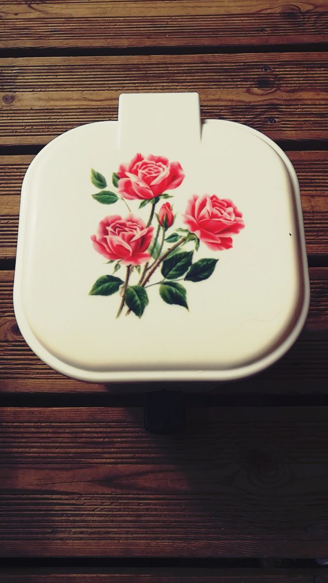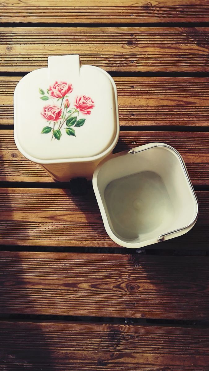 Jolie poubelle à pédale à décor de roses de la célèbre marque SYLA.